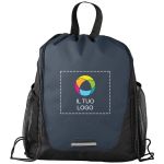 Tieni i tuoi essenziali organizzati per allenamenti, commissioni e avventure con questa borsa con cordoncino personalizzata. Presenta una tasca anteriore con cerniera e tasche laterali a rete.