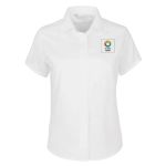 Aggiungi un tocco di stile al tuo look con la camicia a maniche corte classica in tessuto spigato Russell™ da donna. Abbinala a una gonna longuette dritta per un outfit più professionale o a un paio di jeans per un aspetto più casual. Personalizzala con il tuo logo e fatti pubblicità con stile.