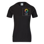 Crea un look che rifletta il tuo marchio con questa maglietta da donna personalizzabile. Realizzata in 100% cotone con un comodo scollo tondo e una vestibilità su misura.