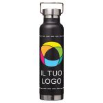 Questa bottiglia personalizzabile è dotata di una resistente struttura a doppia strato sottovuoto, che garantisce che le bevande rimangano fredde per 48 ore o calde per almeno 12 ore. Inoltre, impedisce la formazione di condensa all'esterno, mantenendo le mani e gli oggetti all'asciutto. Inoltre, il resistente rivestimento verniciato a polvere aggiunge un tocco di stile al design robusto. È dotata di un tappo a vite in acciaio inossidabile, completo di un robusto passante in acciaio inossidabile per facilitare il trasporto. L'ampia apertura facilita le operazioni di riempimento e versamento e consente di aggiungere cubetti di ghiaccio alle bevande. Viene fornita in un'elegante confezione regalo, che la rende un'ottima scelta come omaggio. Aggiungi i tuoi dettagli personalizzati, logo, messaggio o qualsiasi altra immagine, grazie al nostro strumento di design facile da usare. Hai bisogno di assistenza per dare vita al tuo progetto? Siamo qui per aiutarti.