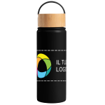 Mantieni le tue bevande calde o fredde più a lungo grazie a questa elegante borraccia con isolamento sottovuoto a doppio strato e un raffinato coperchio in bambù provvisto di un manico per trasportarla con praticità.