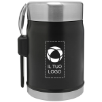 Mantieni i pasti caldi o freddi ovunque la giornata ti porti con questo contenitore termico per alimenti che include un comodo cucchiaio-forchetta attaccato per mangiare in movimento. Che tu stia preparando il pranzo per l'ufficio, partendo per un viaggio in campeggio o facendo il pieno di energie durante le avventure di viaggio, questo design a bocca larga rende il riempimento e la pulizia facili. Personalizzarla è semplice: aggiungi logo, slogan o contatti utilizzando il nostro intuitivo studio di progettazione. Hai bisogno di assistenza? I nostri esperti di design sono a disposizione per dare forma alle tue idee.