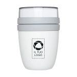 Aggiungi praticità al tuo pranzo con il contenitore portapranzo personalizzabile Ellipse Mepal™. E’ suddiviso in due sezioni per mantenere i cibi separati. Inoltre, va in freezer, in microonde e in lavastoviglie. Riempi il contenitore superiore e inferiore con la tua zuppa, pasta, carne o insalata avanzati e mantienili in fresco per ore. Quando la fame chiama, scalda al microonde il contenitore inferiore senza sporcare altri piatti. Il contenitore trasparente superiore non può essere utilizzato in microonde, ma è perfetto per riporre snack o persino il gelato! Personalizza il tuo contenitore portapranzo con il nostro programma di grafica interattivo e fai in modo che il nome della tua azienda sia sulla bocca di tutti.