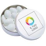 - Scatolina in latta lucida contenente 18 g di mentine senza zucchero. Riempibile, sigillata con nastro da strappare