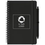 Cattura tue idee e mantieni l'ordine con questo quaderno rilegato a spirale realizzato con materiali riciclati. Utilizzalo durante le riunioni, per la pianificazione quotidiana o per abbozzare idee creative con la penna retrattile inclusa. Personalizzarla è semplice: aggiungi logo, slogan o contatti utilizzando il nostro intuitivo studio di progettazione. Hai bisogno di assistenza? I nostri esperti di design sono a disposizione per dare forma alle tue idee.