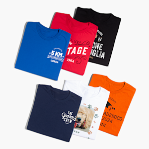 Ebbene sì, alcuni eventi sono più divertenti quando si indossano magliette pensate appositamente per l’occasione! Stai organizzando un addio al nubilato o festeggerai un compleanno importante? Le magliette per eventi ti aiuteranno a creare un look coordinato per tenere vivo il mood della festa e donare un outfit fantastico ai tuoi invitati. E anche dopo che i festeggiamenti sono finiti, le magliette per compleanni e addii al nubilato saranno un souvenir che ti ricorderà per sempre di quei momenti felici. Stai cercando volontari per un evento locale? Devi fare un’escursione con i tuoi amici e avete bisogno di una mise perfetta? Le magliette per eventi fanno al caso tuo. La quantità minima richiesta è di 1 unità, quindi se ti occorre una sola maglietta per un capogruppo o un ospite d’onore, non c’è problema.
