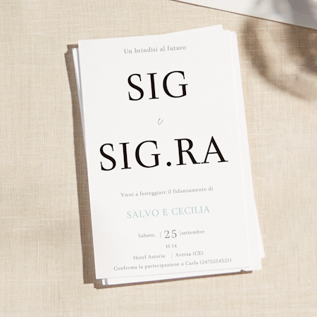 VistaPrint propone articoli indispensabili per matrimoni che renderanno ogni festeggiamento memorabile quanto le nozze stesse. Adorna la tua location con decorazioni che riflettano lo stile personale della coppia: lo sfondo perfetto per trascorrere bellissimi momenti in compagnia di amici e parenti. Vai sul sicuro con il nostro aiuto: scopri un’ampia gamma di eleganti design perfeste di fidanzamento, feste prematrimoniali e addii al nubilato. La ciliegina sulla torta? Deliziose bomboniere che gli invitati vorranno conservare per sempre.