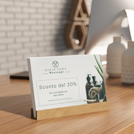Noi di VistaPrint sappiamo bene quanto sia importante creare un brand efficace nel settore del fitness e del benessere. Ecco perché offriamo prodotti di marketing personalizzati e modelli predefiniti dall’aspetto professionale che ti aiutano a essere, sentirti e apparire sempre al meglio di te. Che tu gestisca un piccolo centro fitness, un negozio di alimentari salutari o un’attività indipendente, abbiamo tutto ciò che ti serve per avere successo. I nostri bellissimi design possono essere utilizzati per tutti i tuoi articoli promozionali, regali e omaggi, in modo da ottenere un’estetica uniforme ed efficace. E poiché crediamo che la tua attività sia unica nel suo genere, ti offriamo anche la possibilità di collaborare con i nostri designer per creare un logo tutto tuo. In alternativa, puoi dare un’occhiata alla nostra ampia scelta di design progettati appositamente per il settore del fitness e del benessere. Qualunque opzione tu scelga per iniziare, la nostra équipe di esperti sarà pronta a darti una mano in ogni fase del percorso. Lascia che ti aiutiamo ad essere, sentirti e apparire sempre al meglio di te. Costruisci un brand di successo insieme a VistaPrint.