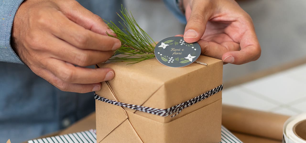 Un packaging efficace può fare davvero la differenza, specialmente ora che le esperienze di “unboxing” sono così popolari su Instagram. Crea degli adesivi con il tuo logo o con un design tutto tuo e assicurati di apporli a tutte le tue confezioni natalizie. Potresti addirittura utilizzarli al posto del nastro adesivo per avvolgere i prodotti nella carta velina. Decora ogni ordine in maniera unica con uno o più adesivi singoli e vedrai che farai breccia nel cuore dei clienti… che, naturalmente, non potranno fare a meno di parlarne con gli amici!