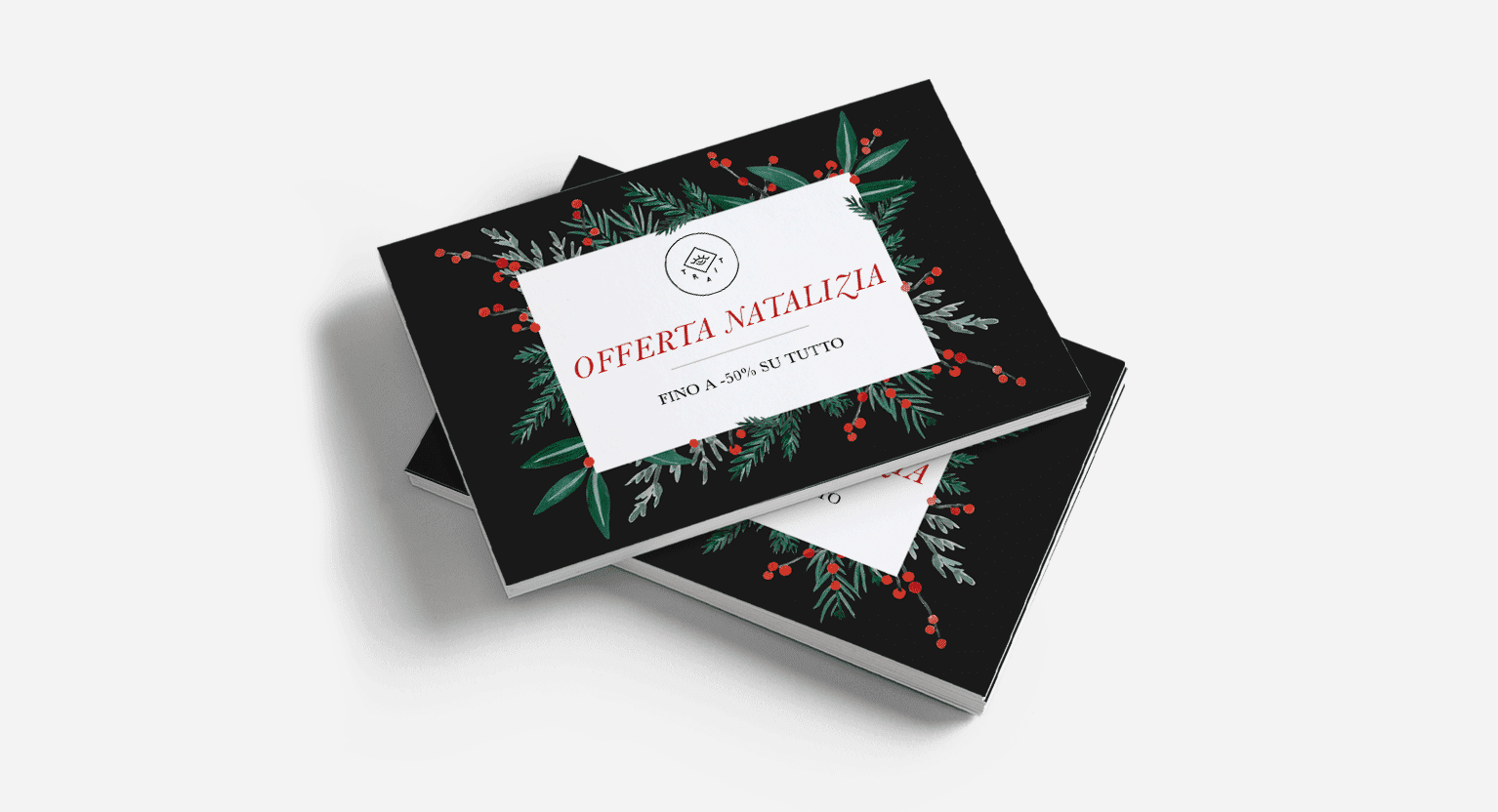 Il periodo delle feste è davvero intenso e sicuramente a dicembre ci sarà molto traffico nella tua attività, di clienti sia nuovi che abituali. Ma come puoi assicurarti che acquistino da te anche dopo le festività? I volantini per le feste sono un’ottima ed economica opportunità per spronare i nuovi clienti a tornare. Prima dell’arrivo delle festività, ordina una grande quantità di volantini per promuovere un’offerta allettante, valida solo da dopo le feste, per incoraggiare i clienti a rivolgersi alla tua attività. Durante la stagione, mettili in bella mostra e consegnane uno ai passanti oppure inviali a chi effettua un ordine online.