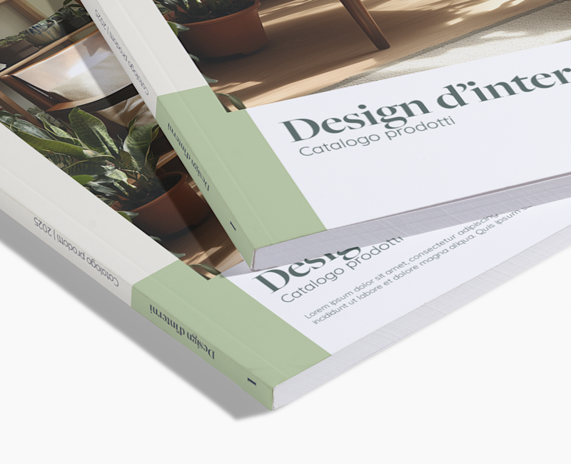 VistaPrint ti consente di scegliere fra varie opzioni di rilegatura, ad esempio a punto metallico per uno stile classico, a brossura fresata per un’estetica curata o a spirale per un pratico risultato piatto. Personalizza ogni dettaglio affinché rifletta perfettamente il tuo brand, dalla copertina al tipo di carta, fino al numero di pagine. Aggiungi loghi, colori e immagini di alta qualità per far risaltare il tuo opuscolo o catalogo.