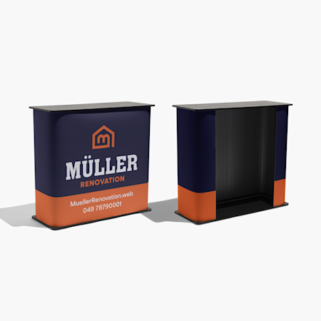 Crea un bancone promozionale montabile in pochi secondi, perfetto per rendere ancora più speciale il tuo prossimo evento. Caratterizzato da uno stile semplice ma personalizzabile in modo versatile, è una soluzione ideale per accogliere gli ospiti, esporre i tuoi prodotti o offrire dimostrazioni ai clienti, il tutto con la massima praticità d’utilizzo. Così potrai concentrarti su quello che conta davvero!