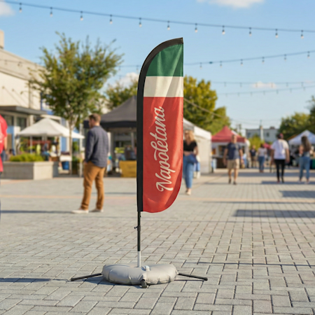 Ad esempio, i nostri striscioni microforati sono composti da poliestere resistente a raggi UV, vento e acqua e sono perfetti per recinzioni o eventi in luoghi ventilati. I cavalletti con serbatoio per acqua restano al loro posto, grazie alla base che puoi riempire, e sono resistenti al vento fino a 140 kmh. Gli espositori con sostegno a X per esterni offrono basi zavorrate e stampe che impediscono il passaggio della luce e che restano al loro posto con qualsiasi condizione atmosferica. Sono inoltre disponibili bandiere e bandiere a vela composte da robusto poliestere concepito per ondeggiare nel vento: queste opzioni sono resistenti al vento fino a 60 kmh o più, a seconda dello stile scelto.