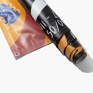 I nostri resistenti striscioni da 600 g/m² sono realizzati in vinile e, pertanto, resistono al maltempo e non scoloriscono. Ciò li rende perfetti da usare in occasione di giochi sportivi, mercati agricoli e concerti, oppure per negozi, aree di accoglienza, stand fieristici e non solo. Non dimenticare di aggiungere gli occhielli in metallo per poterli esporre in modo saldo e duraturo, specialmente se intendi usarli all’aperto.