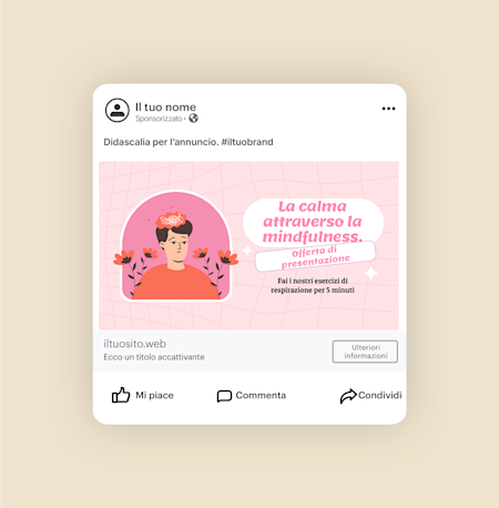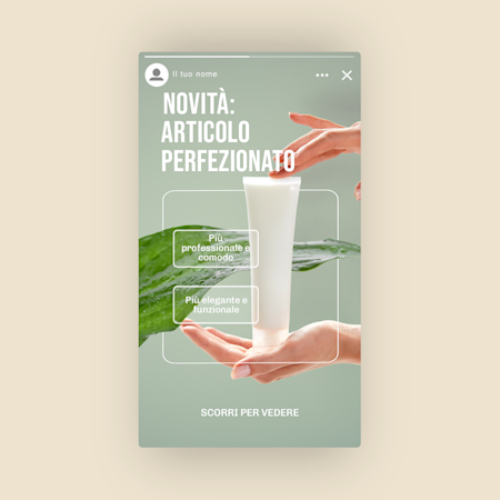 I nostri modelli sono personalizzabili, quindi è facilissimo adattarli al tuo brand. Per farlo, puoi aggiungere vari elementi di design che lo rispecchino, come ad esempio la tua palette di colori, caratteri uguali a quelli che usi di solito (o simili, qualora i tuoi fossero personalizzati), oltre ad eventuali immagini e grafiche del tuo brand che già possiedi (puoi caricarle con il nostro strumento di personalizzazione).